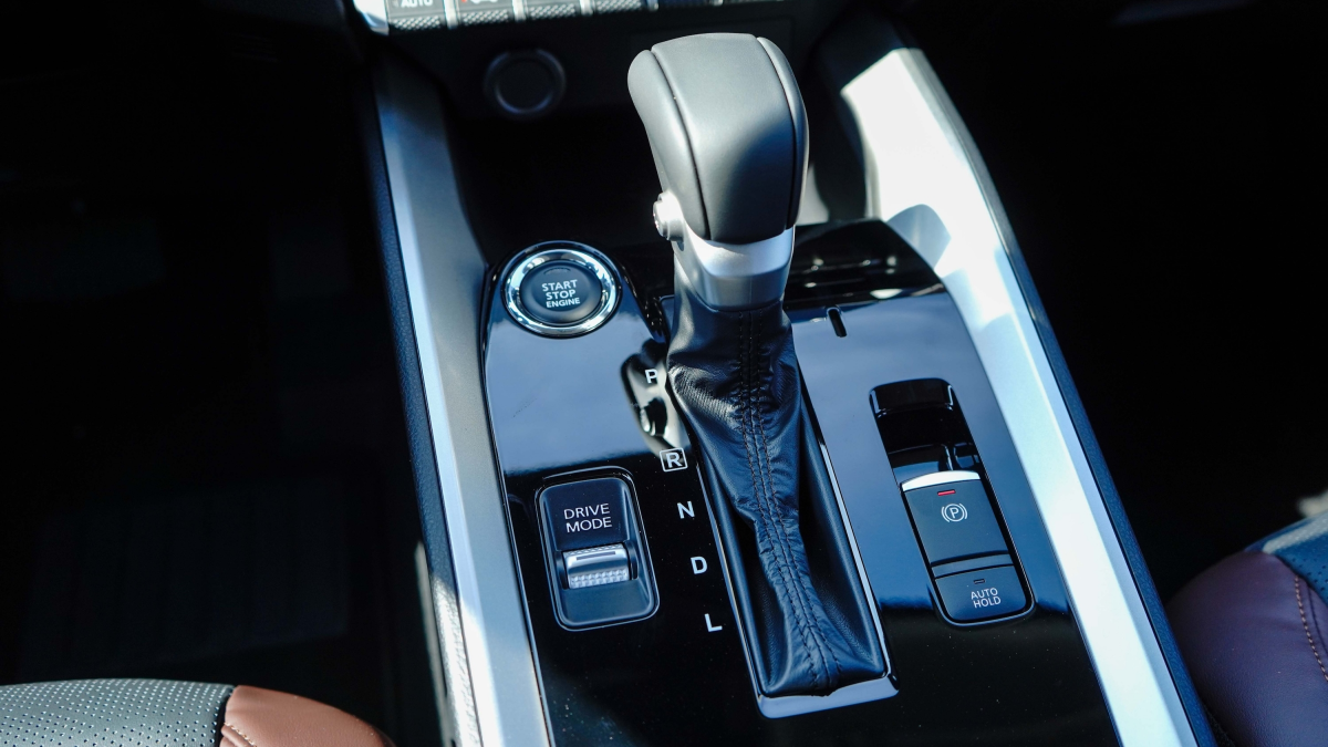 Nội thất mang phong cách tối giản với các nút bấm điều khiển hệ vận hành như phanh tay điện tử và lẫy chuyển chế độ lái.