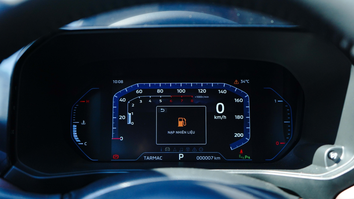 Phía sau vô lăng là màn hình kỹ thuật số 8 inch, hiển thị sắc nét đầy đủ các thông số vận hành, hỗ trợ người lái theo dõi dễ dàng.