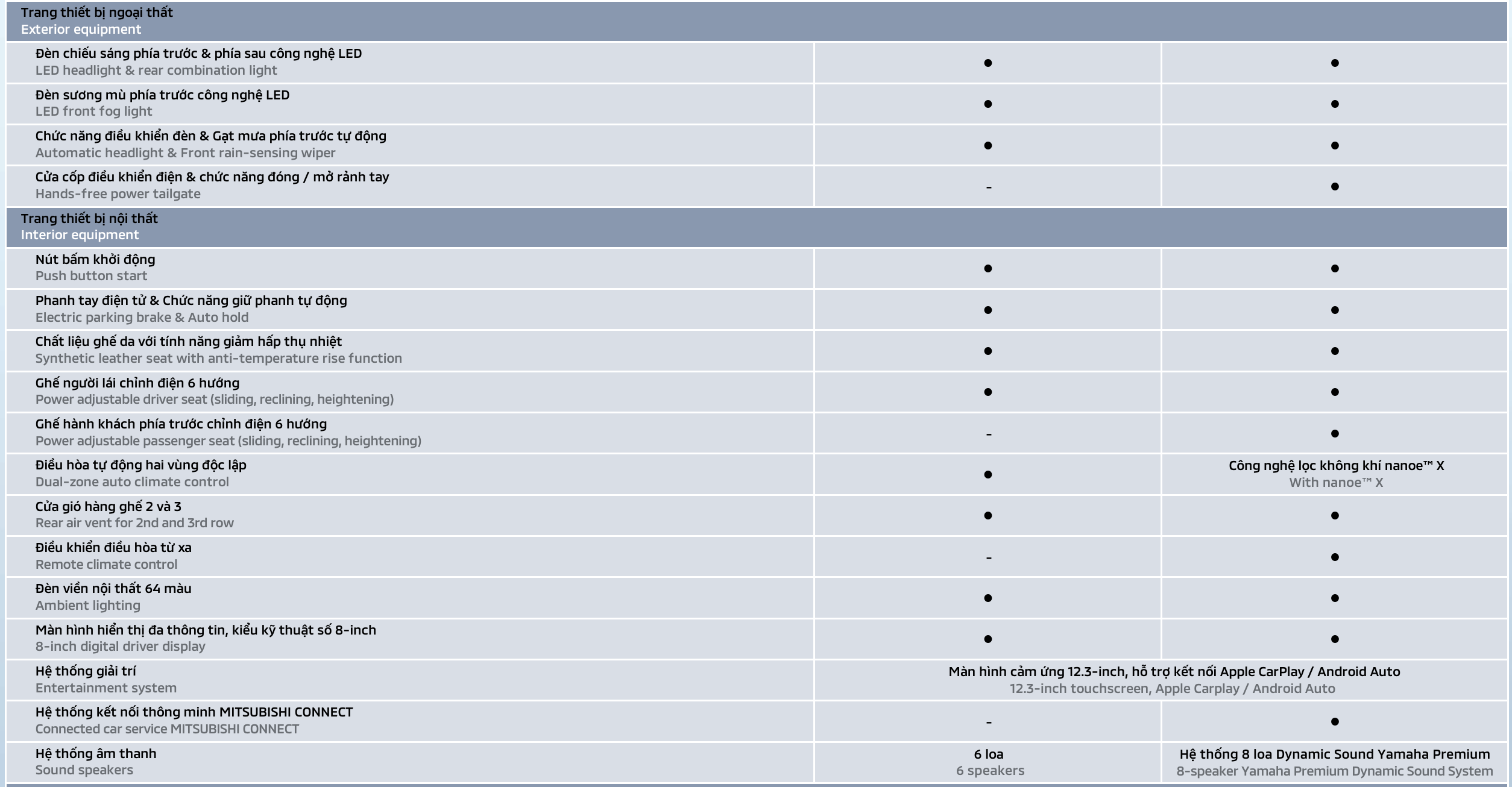 Mitsubishi Destinator Premium trang bị hệ thống âm thanh Dynamic Sound Yamaha Premium, mang đến trải nghiệm âm thanh sống động với bốn chế độ tùy chỉnh: Lively, Signature, Powerful và Relaxing, giúp cá nhân hóa trải nghiệm theo sở thích.