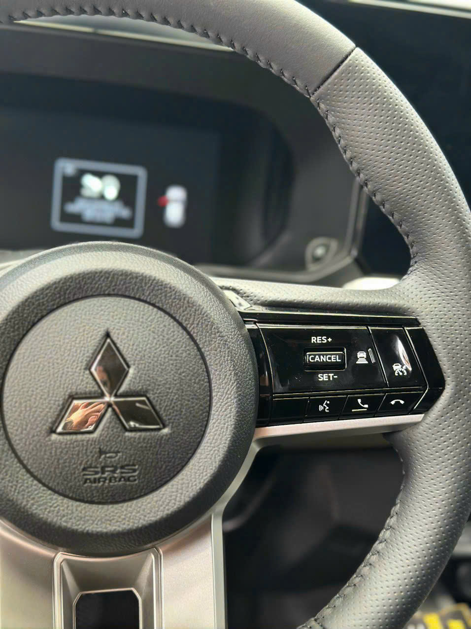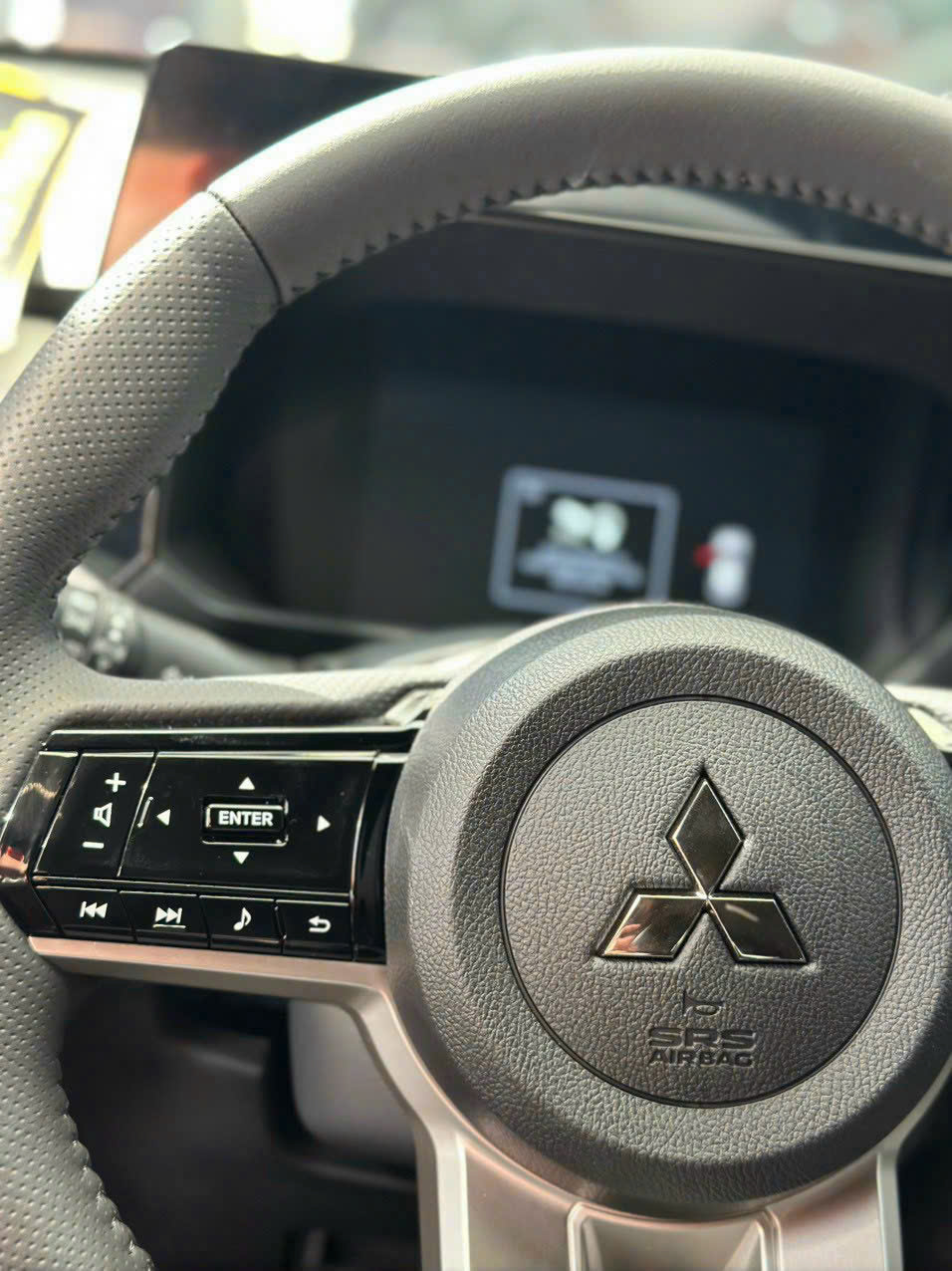 Vô lăng 3 chấu của Mitsubishi Xforce 2025 bọc da, vạt đáy D-cut