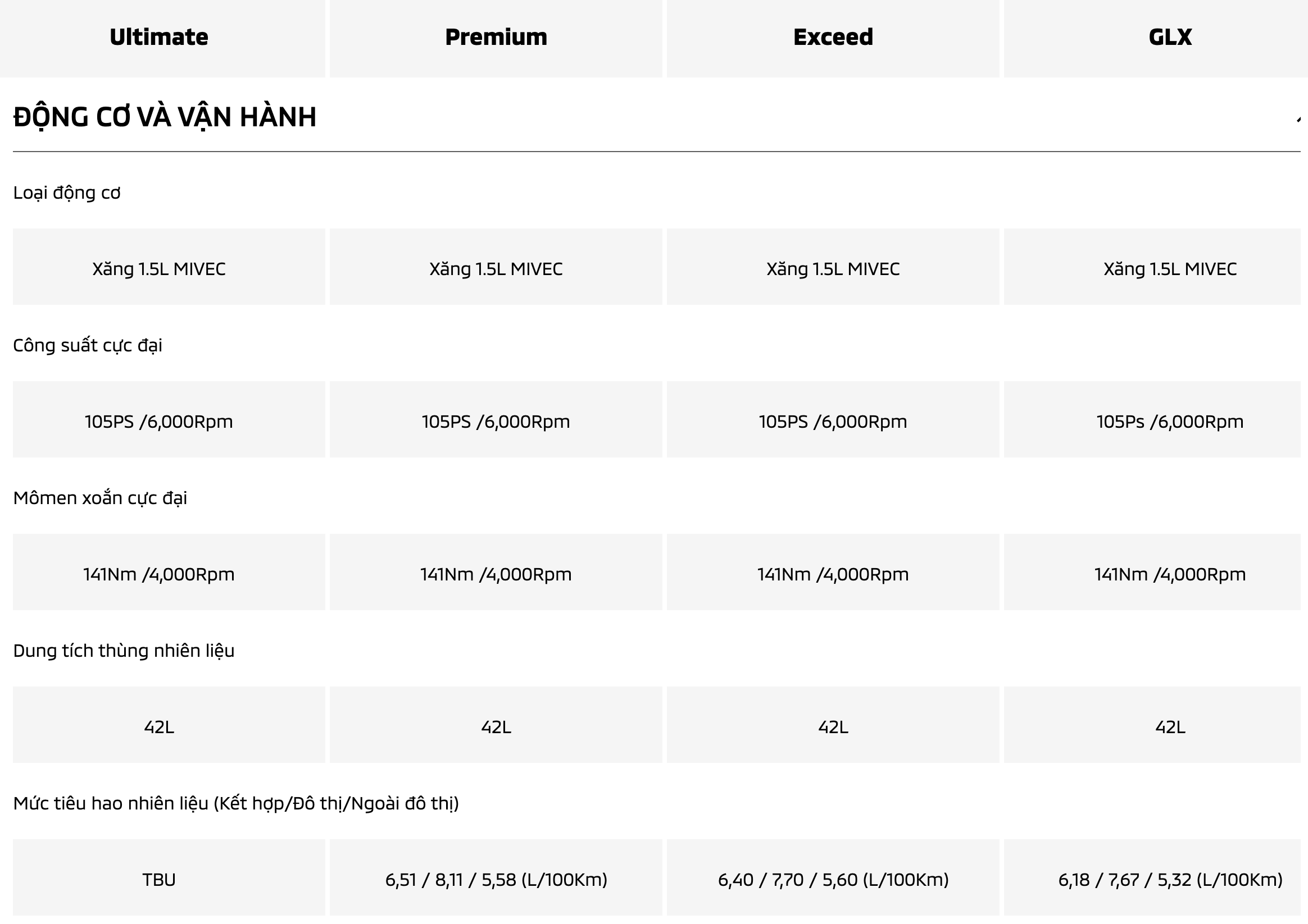Xforce sử dụng động cơ 1.5 MIVEC, 4 xi-lanh, 16 van, công suất 105 mã lực và mô-men xoắn 141 Nm