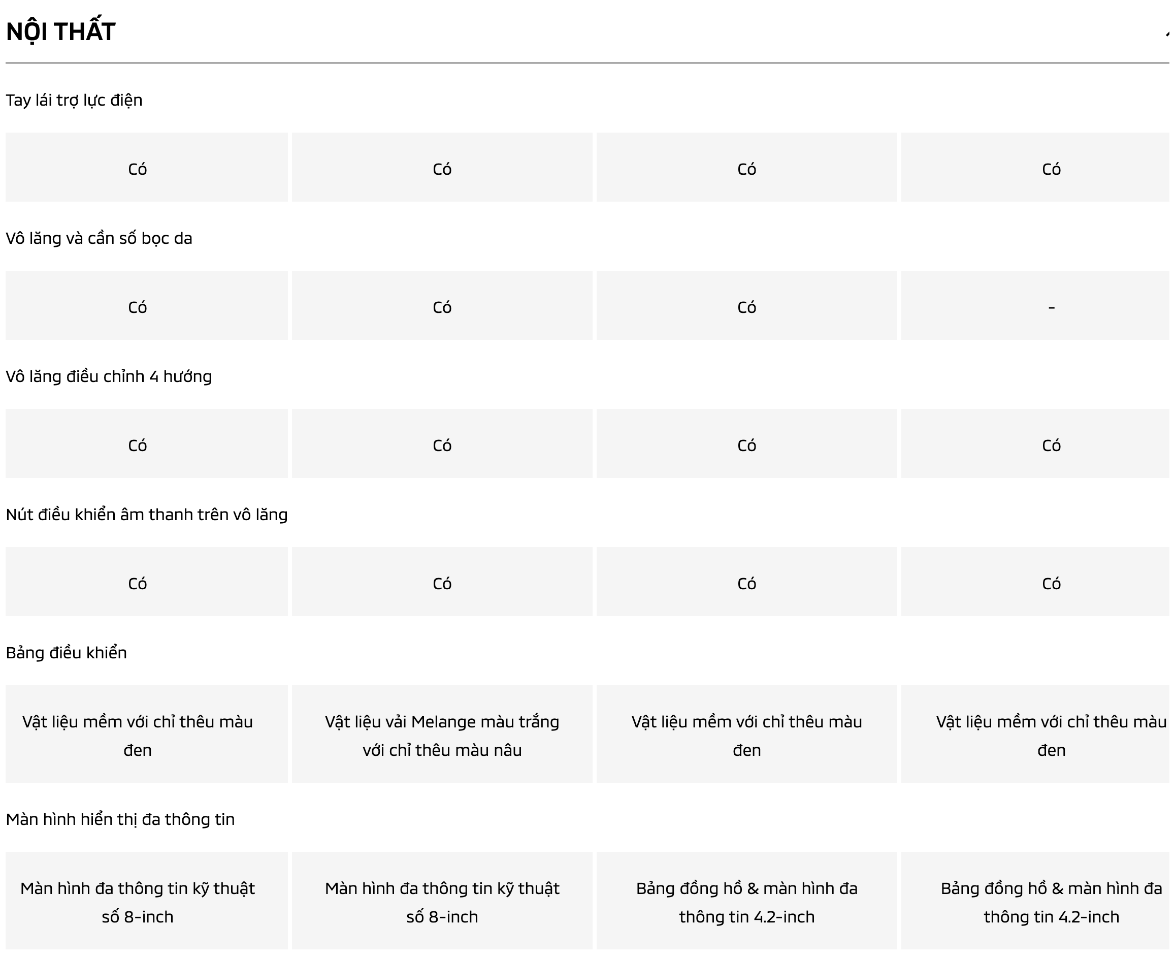 Vật liệu trên táp-lô ở các bản cao cấp là vải melange. Một phần nhỏ trang trí ở ốp cửa cũng sử dụng vật liệu đặc biệt này. Ở bản tiêu chuẩn vẫn là nhựa thông thường.