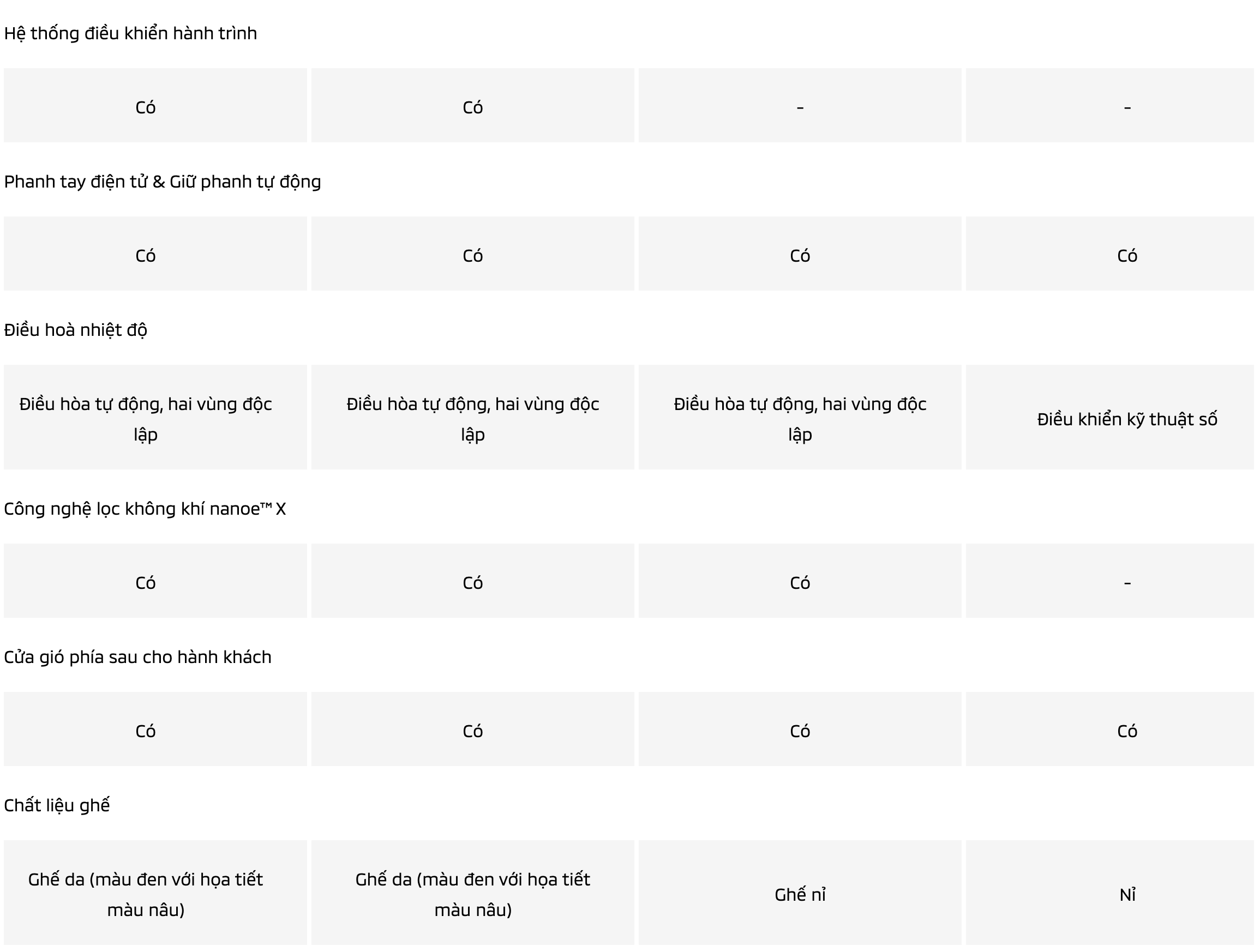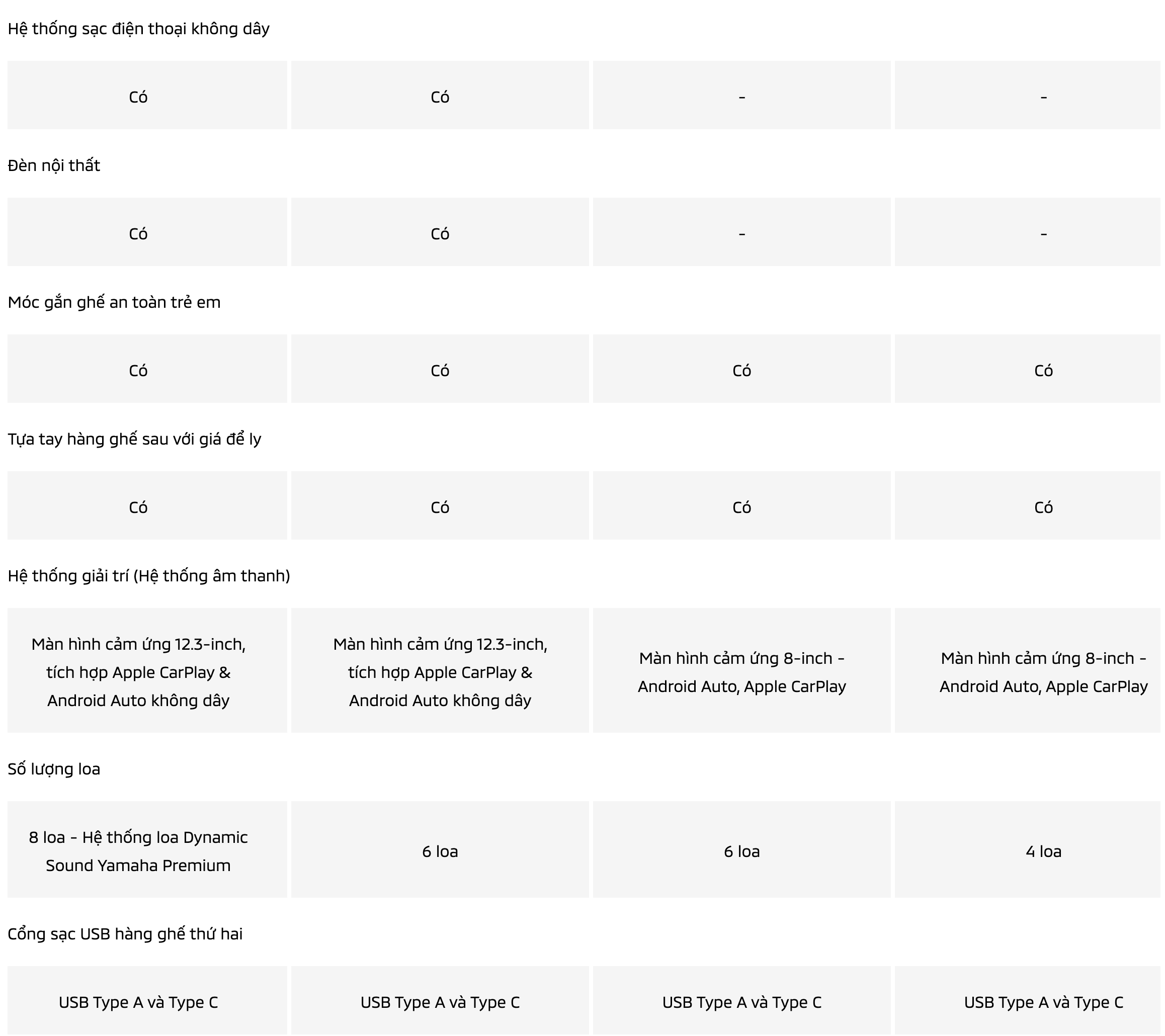 • Cổng sạc USB-A và USB-C cho cả hai hàng ghế